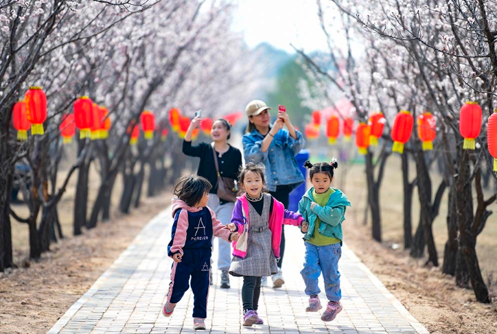 近年來,內(nèi)蒙古自治區(qū)鄂爾多斯市準格爾旗依據(jù)當(dāng)?shù)鬲毺氐淖匀粭l件,利用荒山禿嶺,采取“公司+基地+農(nóng)戶+經(jīng)紀人”的模式,大力發(fā)展杏樹種植業(yè),累計種植杏樹林80萬畝,形成綠樹花海生態(tài)景觀,吸引許多游客到這里游覽,讓農(nóng)牧民走上新的致富路。圖為2021年4月9日,游客在鄂爾多斯市準格爾旗第六屆鄉(xiāng)村旅游杏花季活動中賞花。(攝影:王正)