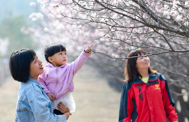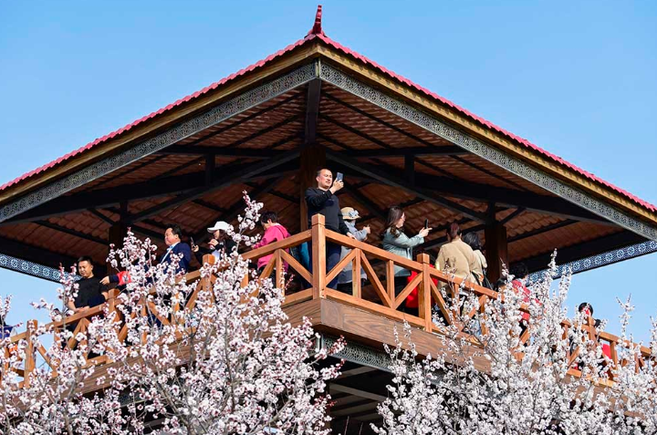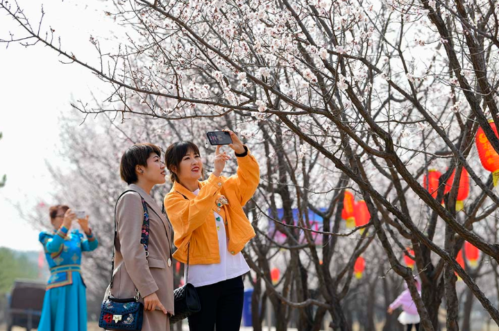 2021年4月9日,游客在鄂爾多斯市準格爾旗第六屆鄉(xiāng)村旅游杏花季活動中賞花。(攝影:王正)