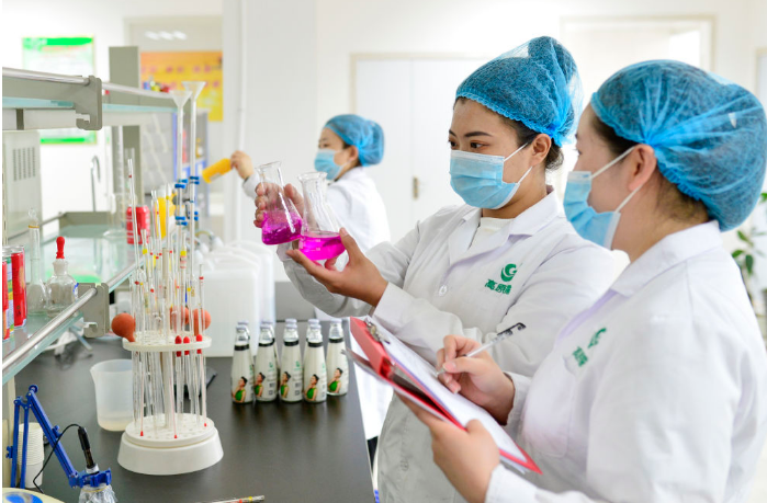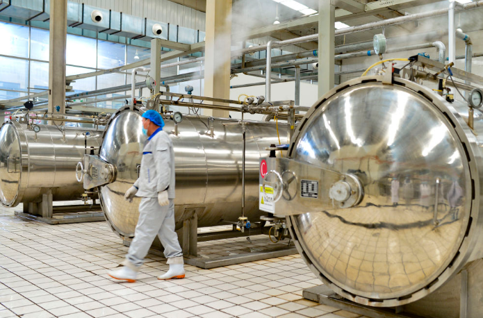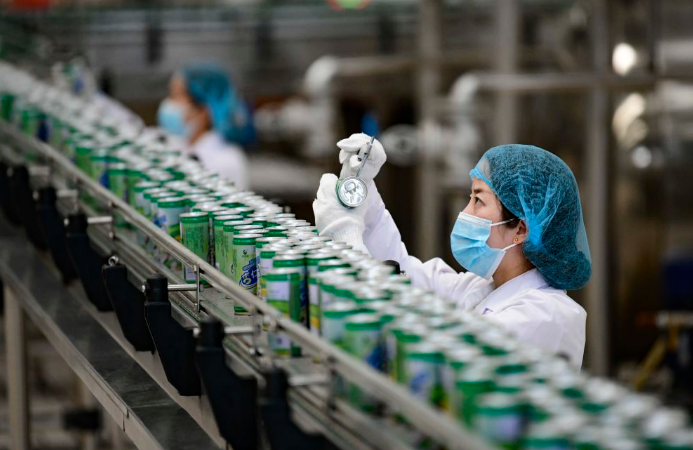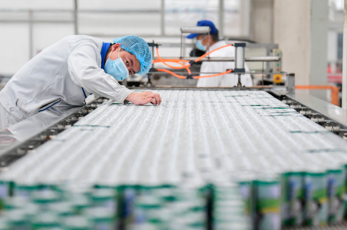 4月11日,內(nèi)蒙古一家食品公司的技術(shù)人員在檢驗產(chǎn)品質(zhì)量。
